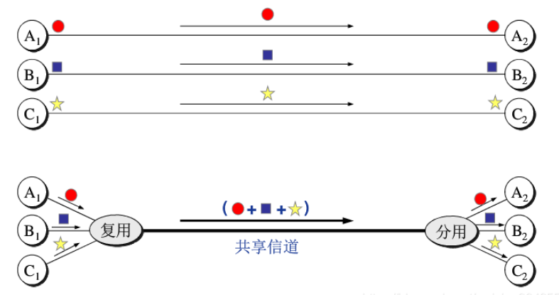 多路复用简单来说就是使多个信号可以共享同一传输路线。