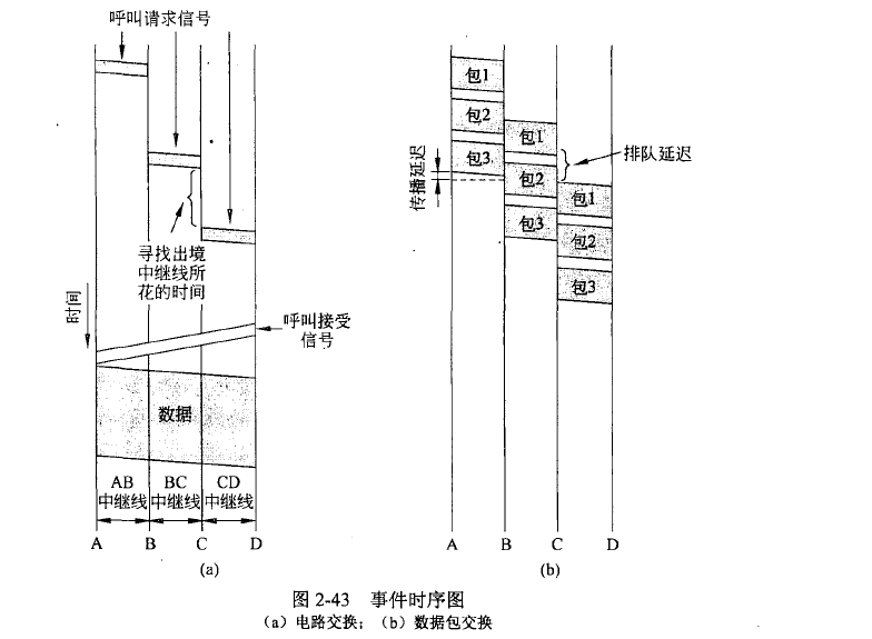 - 电路交换的三个阶段:建立连接、通信、释放连接