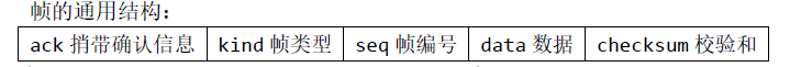组成帧的四个字段:kind、seq、ack 和info。前三个包含控制信息,称为帧头,最后一个可能包含了要被传输的实际数据。