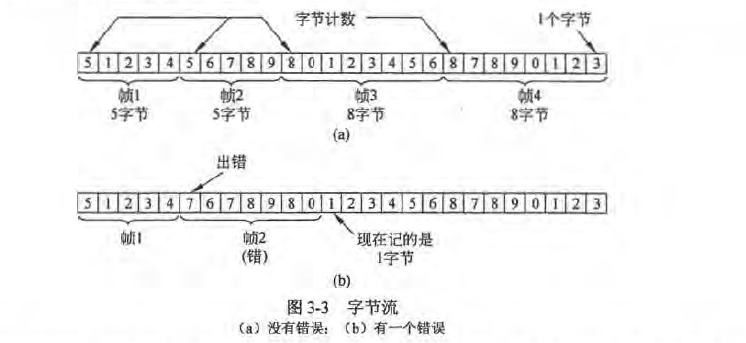 问题:因为一个传输错误,就会全弄混。很少被使用。Flag Bytes with byte stuffing(字节填充的标志字节法)