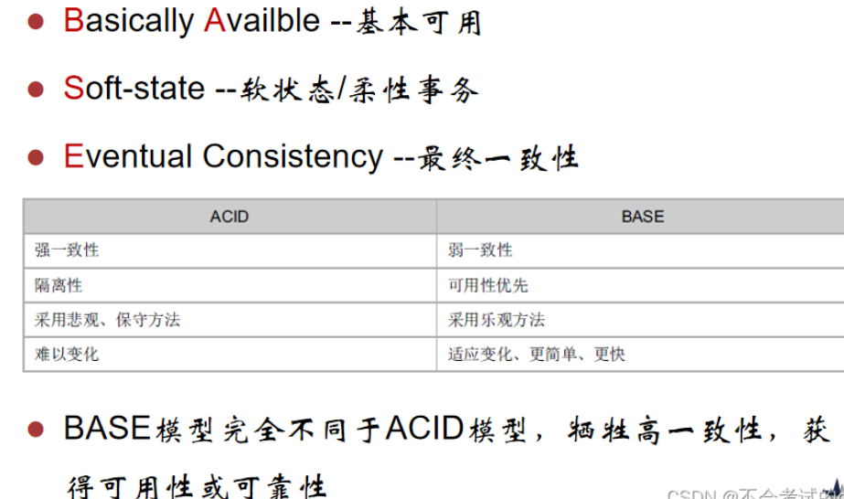 BA—基本可用:指分布式系统在出现不可预知故障的时候,允许损失部分可用性——但请注意,这绝不等价于系统不可用(可能出现如响应时间,功能上的损失)