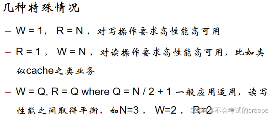 只需W + R > N,就可以保证强一致性,因为读取数据的节点和被同步写入的节点是有重叠的
