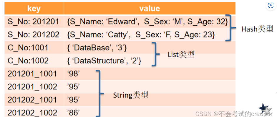 Eg.不会局限于固定的结构,可以减少一些时间和空间的开销——KV键值对数据库【不用多表联查】