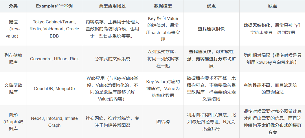 非关系型数据库的实质:非关系型数据库产品是传统关系型数据库的功能阉割版本,通过减少用不到或很少用的功能,来大幅度提高产品性能。具体应用需要权衡。