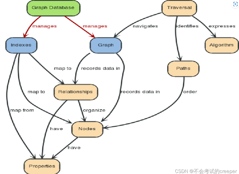- Document DB to Neo4j:和传统数据库相比下多了个数据库实例,【在传统数据库下是模式,其实不太用得到】,每一级呈现包含关系,最后考虑引用文档/集合的联系